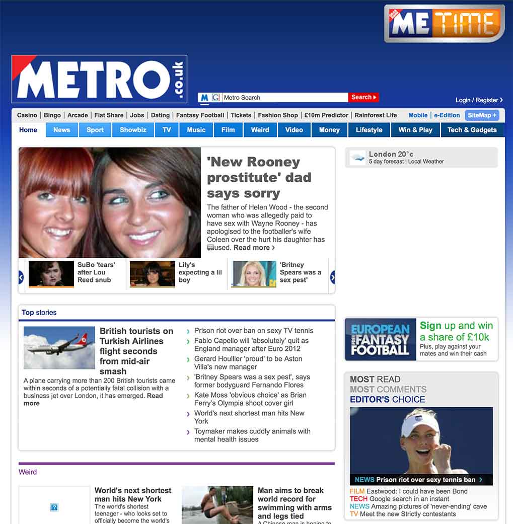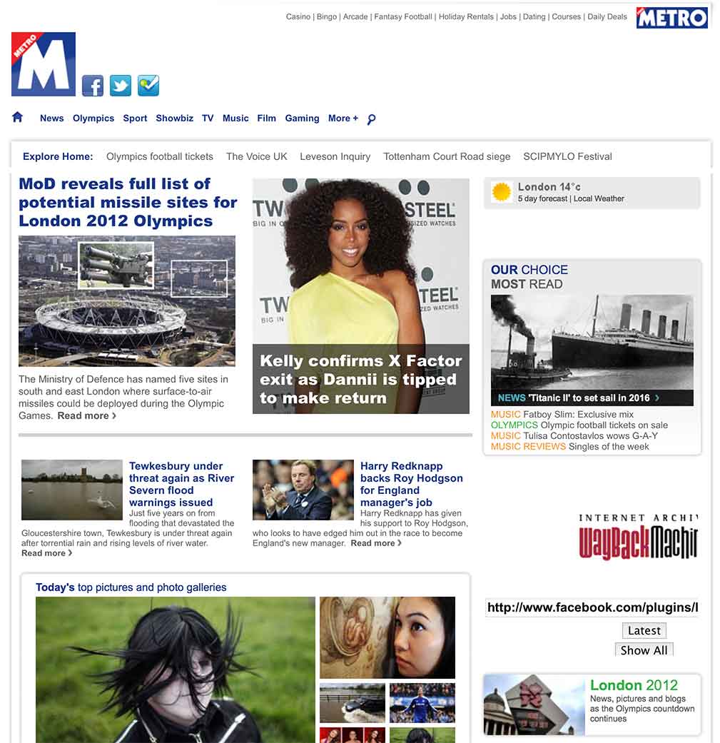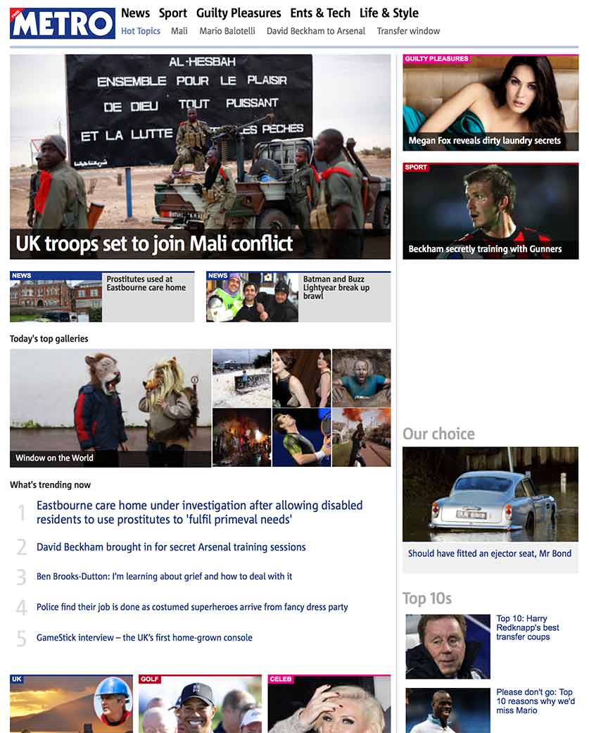 Evolution of the Metro.co.uk homepage over the past four years