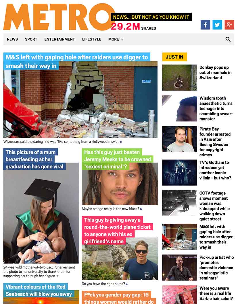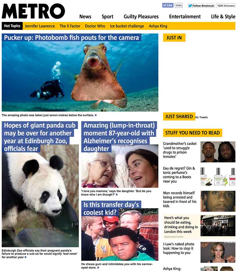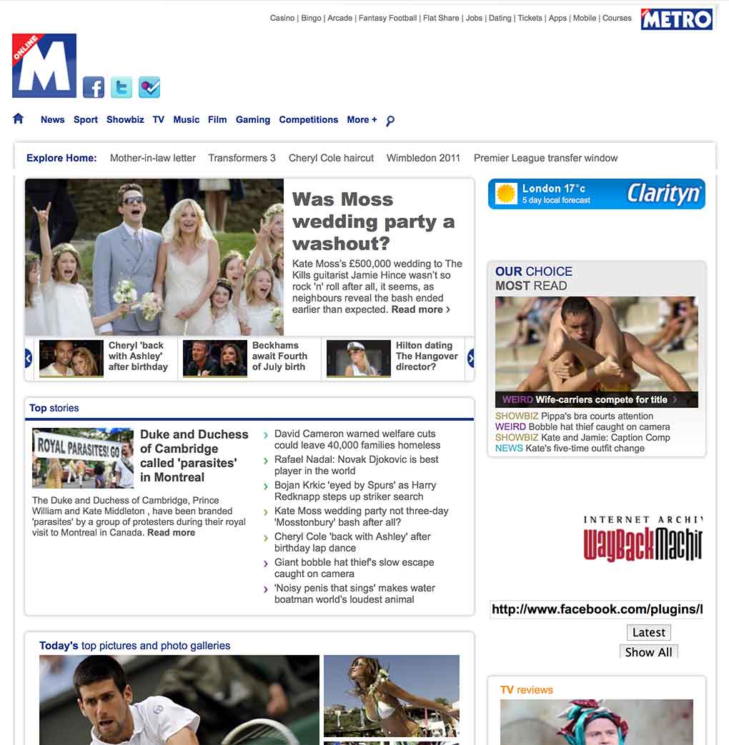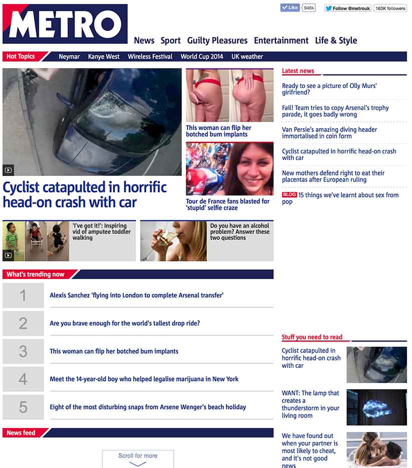 Evolution of the Metro.co.uk homepage over the past four years